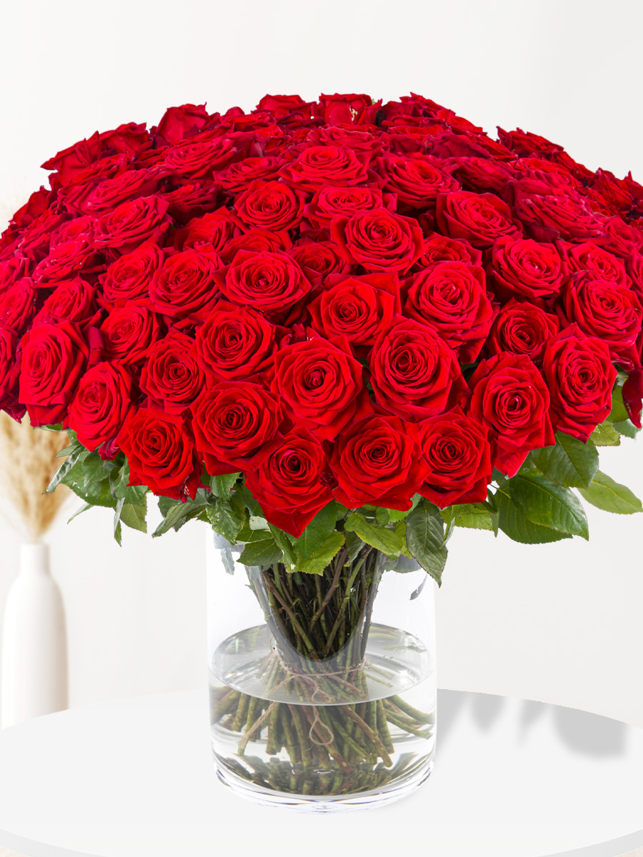 Stuur deze 100 rode rozen met Valentijnsdag, met een speciaal jubileum, of zomaar, omdat je van iemand houdt. Zijn 100 rode rozen niet het juiste aantal rozen voor jou, neem dan een kijkje bij ‘kies je eigen aantal’ en bestel deze rode roos in een eigen gekozen aantal van 10 tot 500 stuks. Surprose wenst je veel plezier en liefde met het geven van dit uitzonderlijke boeket rode rozen.