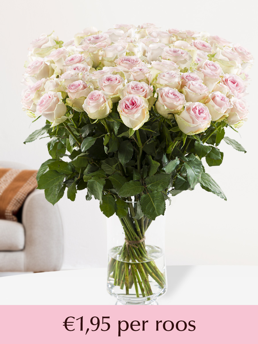 Deze zachtroze rozen zijn van de soort Sweet Revivial en hebben een steellengte van ongeveer 50 centimeter, gekweekt door Timaflor in Kenia. De rozen hebben van binnen een zachtroze kleur wat tot zachtgroen uitloopt naar de buitenkant. Bij het openbloeien van de roos geeft dan een uitzonderlijk effect. Surprose geeft je de optie om deze rozen in ieder aantal vanaf 10 tot en met 1001 stuks te bestellen. Bij dit product kun je deze rozen in stuks van 100 tot en met 499 bestellen en versturen. Geef bijvoorbeeld een boeket met 200 rozen cadeau. Of bestel deze hoeveelheid rozen om meerdere mensen gelukkig te maken met een boeket. Surprose zorgt er voor dat alles mogelijk is op het gebied van rozen bestellen. Benieuwd naar onze andere rozen die in deze grote aantallen te bestellen zijn? Kijk dan bij onze categorie ‘kies je eigen aantal ()’ en laat je verrassen door ons grote scala aan mogelijkheden in deze aantallen. Verras jezelf en een ander door kwalitatief hoogwaardige rozen te bestellen bij Surprose!