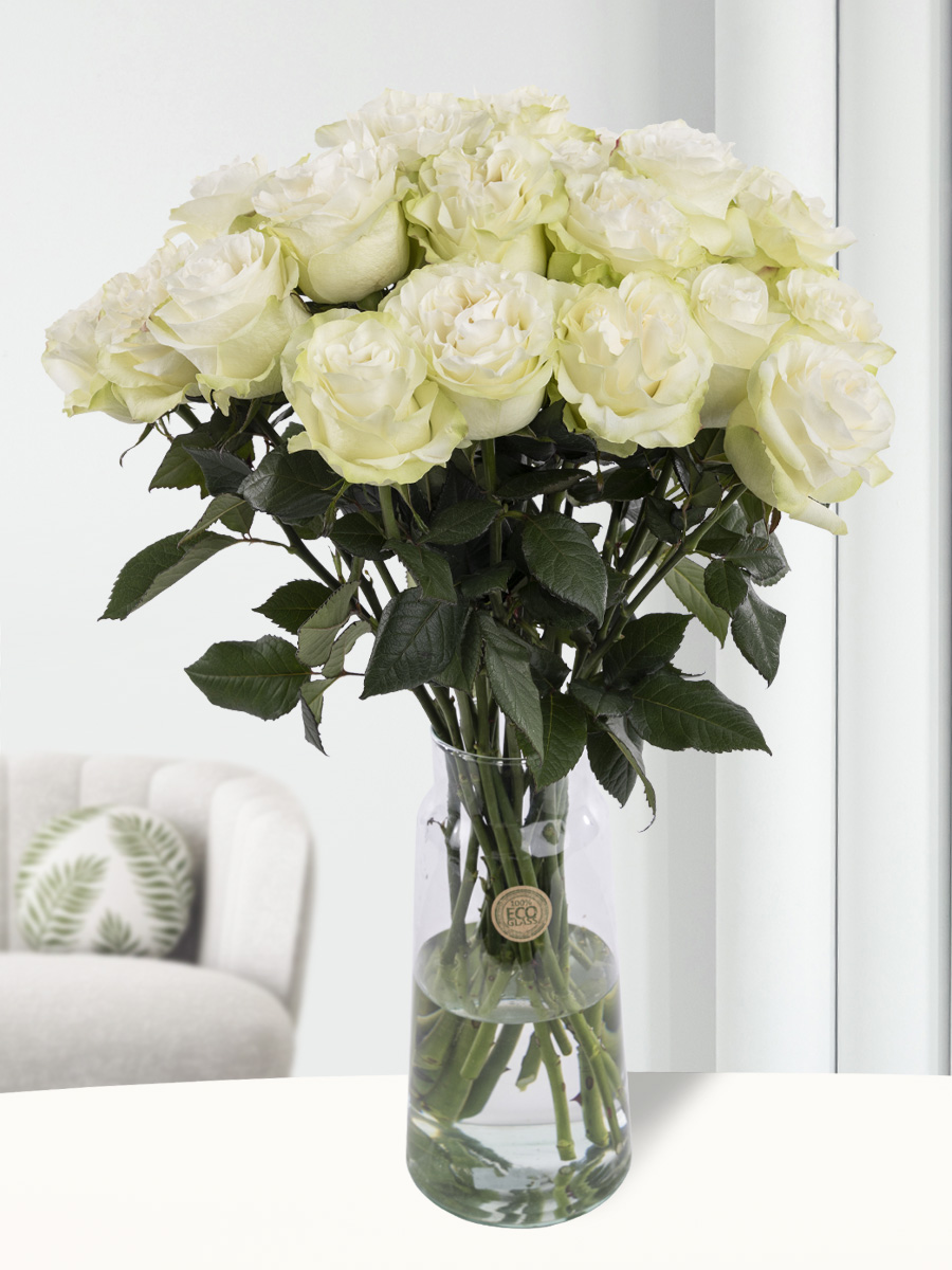 Zijn rozen uit Ecuador dan beter dan rozen uit Europa? Het verschil is de afstand tot de evenaar en de temperatuur. De rozen in Ecuador hebben veel meer uren zon, wat heel goed is voor de rozen. Dat maakt deze rozen wel enorm sterk. Geniet van het lange vaasleven van de witte rozen. Wil je ze zelf graag in huis hebben, of ga je ze cadeau geven aan iemand anders? Wist je dat wij er zonder extra kosten een kaartje bij doen? Geef daar tekst in die je wilt achterlaten voor de ontvanger of laat een videoboodschap achter, zodat de ontvanger weet van wie deze mooie rozen komen!