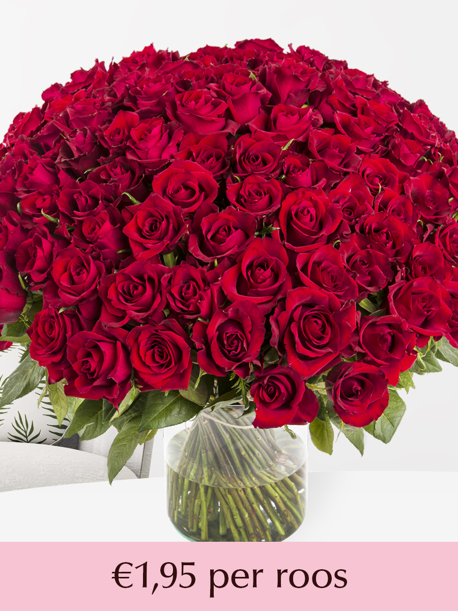 Je kunt ook de rozen per stuk laten verpakken door onze bloembindsters. Wil je bijvoorbeeld de rozen gaan uitdelen en weggeven per stuk? Wij kunnen elke roos voorzien van een waterflesje en een folie. Op deze manier kun je de rozen per stuk weggeven, krijgen de rozen water en zullen ze niet beschadigen. De handelingen hiervoor zijn gelijk aan het toevoegen van een witte roos. Bestel het aantal rode rozen dat je zou willen hebben. In je winkelmand scroll je naar beneden. Onder “Meer keuzes” zul je het product “Per stuk verpakken” tegenkomen. Het aantal rozen dat je per stuk wil laten verpakken kun je hier invullen en ook bestellen. Rond vervolgens je bestelling verder af zoals je gewend bent. Wij zorgen dan voor de rest! Heb je toch nog vragen? Neem dan vooral even contact met ons op.