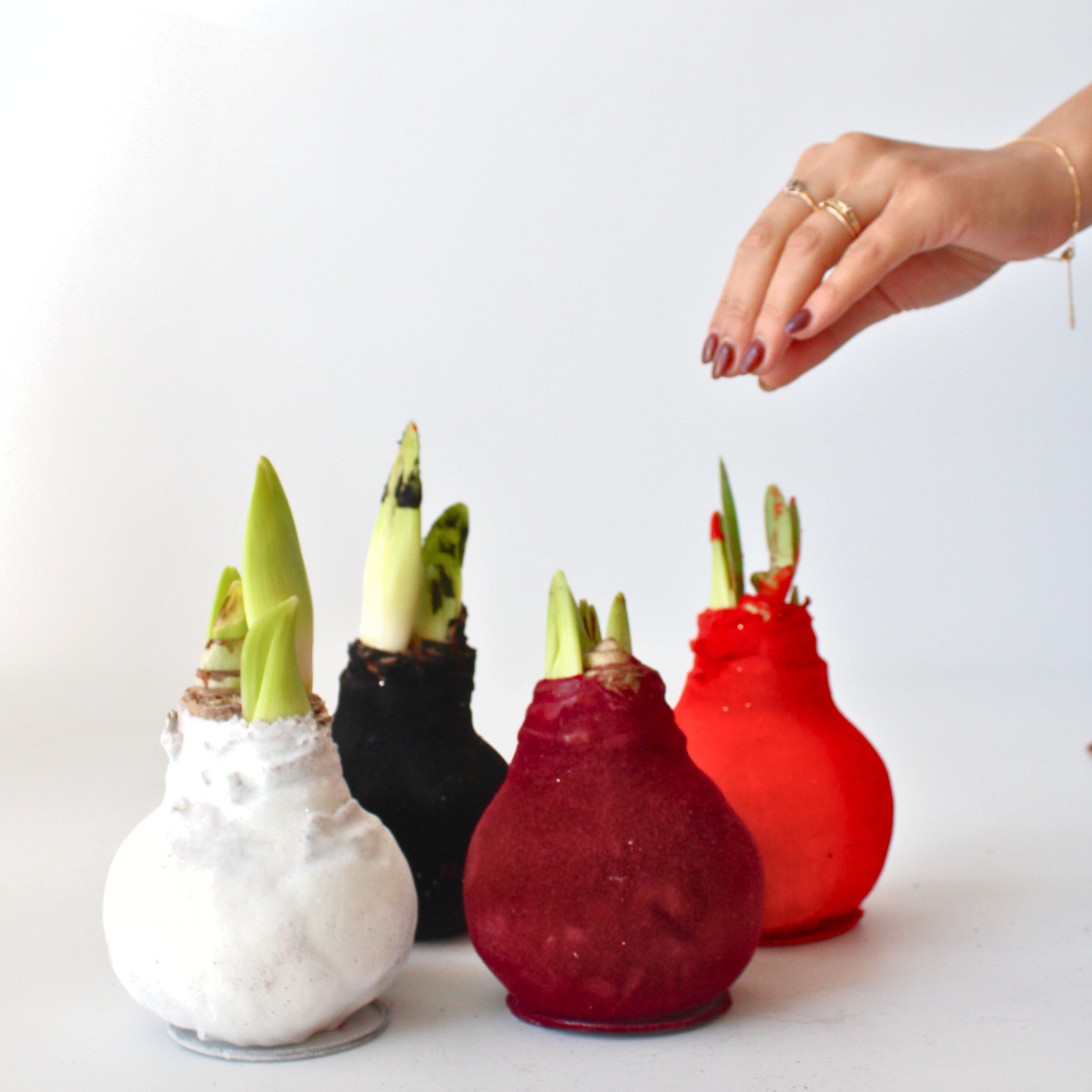 Breng de winterse sfeer in huis met Amaryllis! De prachtige en elegante rode bloemen stelen de show in je winterse interieur. De prachtige bloemen hebben een bloeitijd van 3 tot 6 weken. De bol is ongeveer 32cm in omtrek en wordt met een glamoreus rood velvet waslaagje geleverd.