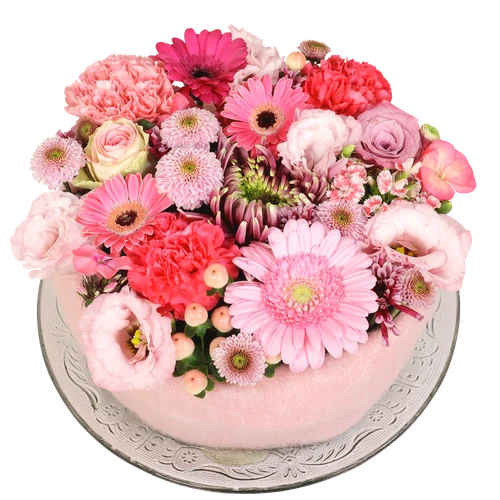 Een taart gemaakt van bloemen. Roze kleuren zijn hier het uitgangspunt voor de bloementaart. Thuiswinkel lid. Bestel eenvoudig. Bepaal zelf de bezorgdatum.