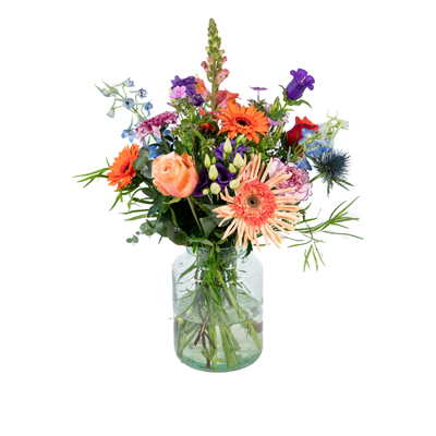 Speels boeket met diverse kleuren en groen