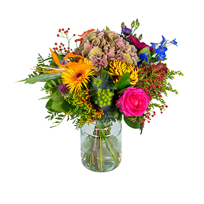 Een echte binnenkomer is dit boeket. Een mooie samenstelling van verschillende seizoenbloemen.