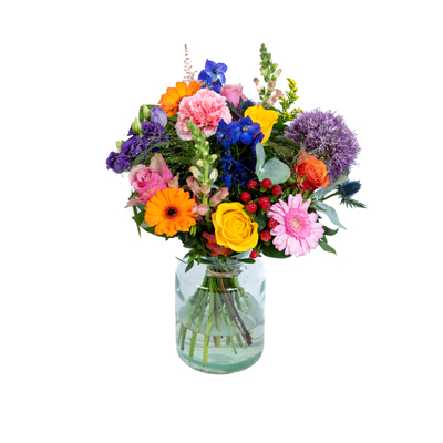 Mooi vol boeket met zomerbloemen in diverse kleuren