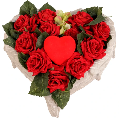 Een hart van rode kunst rozen gemaakt in een mand. Voor altijd voor jou geliefde. Geef dit hart rode rozen cadeau. Thuiswinkel lid. 24/7 bezorging.