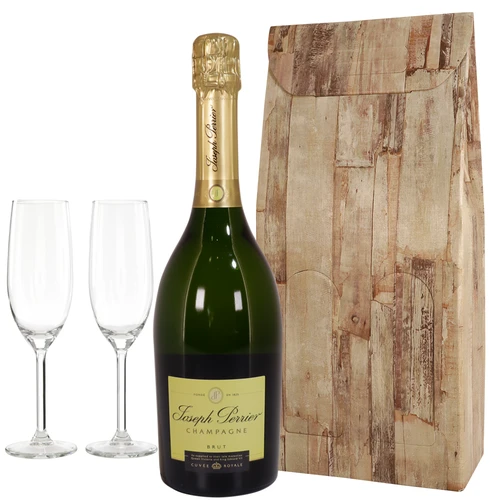 Champagne pakket van Joseph Perrier Brut en champagne glazen compleet geleverd in heel Nederland en direct te consumeren. Thuiswinkel Lid.