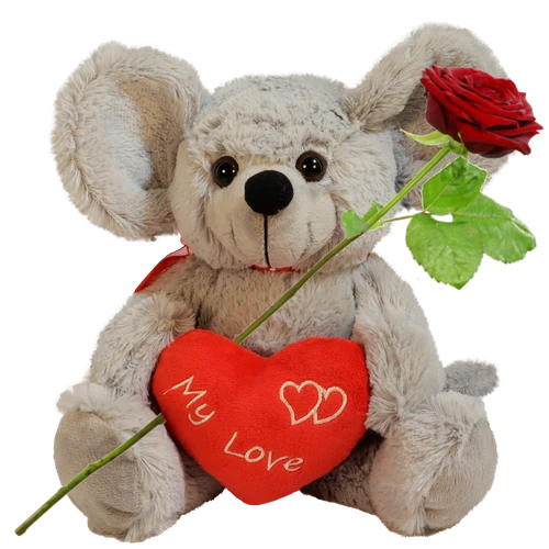 Knuffel muis lekkere knuffelige knuffel met rood hart. Zachte pluche. Voordeel prijs € 18,95