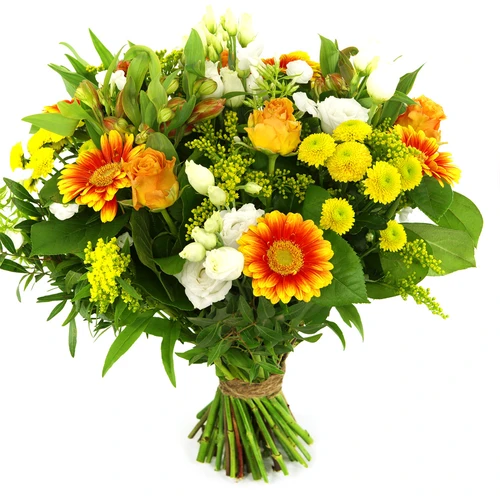 Opgewekt boeket geel oranje wit bestellen bij BoeketCadeau.nl