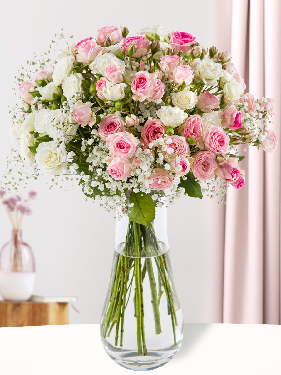Deze trosrozen (https://www.surprose.nl/specials/trosrozen)zijn van de soort Pipita Mimi Eden en worden door meerdere kwekers in Nederland gekweekt en geleverd aan Surprose. Verstuur dit prachtige klassieke boeket met Surprose en krijg de mogelijkheid om gratis een persoonlijke wenstekst toe te voegen die in de verzenddoos van de rozen toegevoegd wordt. Wil je graag nog iets extra’s toevoegen aan jouw verzending? Kijk dan bij onze cadeaus () en maak van dit boeket een nog groter geschenk door bijvoorbeeld wijn, champagne of chocolade toe te voegen.