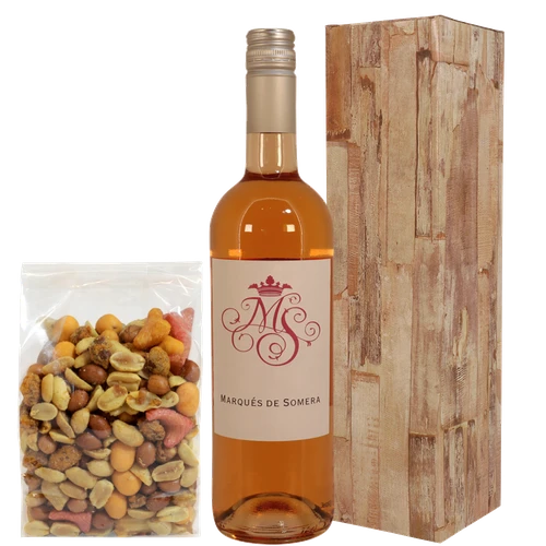Een heerlijke combinatie Spaanse rosé wijn en verse en 300 gram verse borrelmix zoutjes. Een compleet cadeau!. Bestel vandaag nog en laat deze combinatie samen bezorgen in heel Nederland.