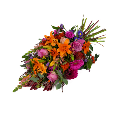Met intens veel bloemen en verschillende kleuren toont dit boeket u een glimlach in tijden van verdriet en troost.